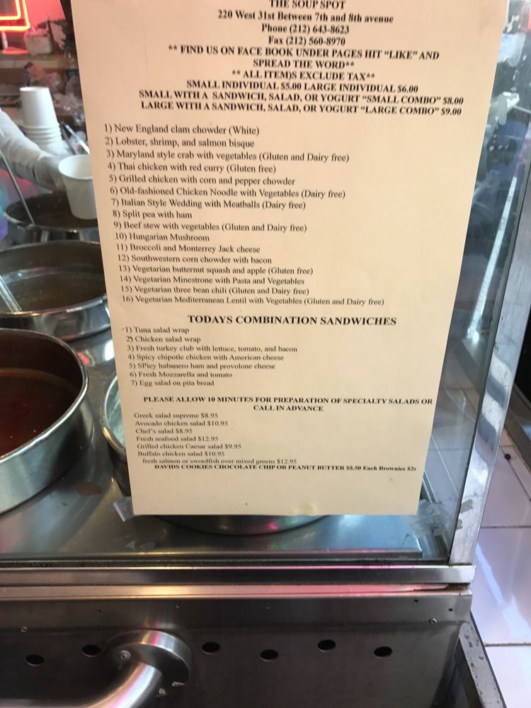 Welcome to Soup Spot, a delightful haven for soup lovers nestled at 220 W 31st St #2, New York, NY! With a cozy and casual atmosphere, this gem specializes in an array of hearty soups, making it an ideal destination for a quick bite or a lavish lunch break.